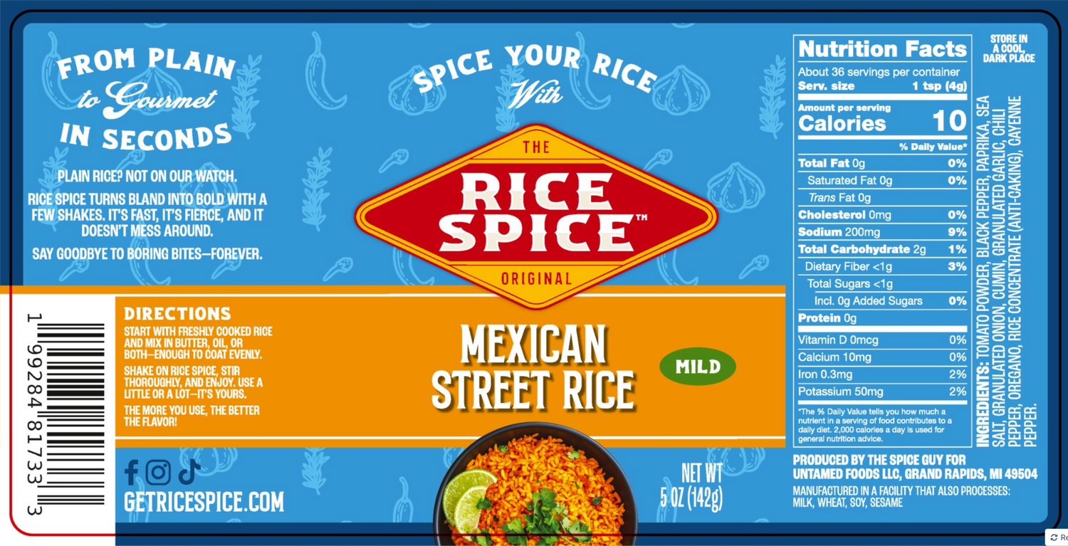 Shake on rice spice, stir thoroughly, and enjoy. use a little or a lot-it's yours.